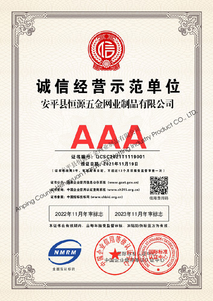 多年來,安平縣恒源五金網業制品有限公司堅持“科技興企、質量立業”的經營理念和“誠心為本、客戶至上”的合作宗旨,優化生產工藝,打造優質產品,提供完善的服務,受到國內外客戶的一致好評,產品行銷全國各地,并出口美國、德國、韓國、日本、臺灣等國家和地區。